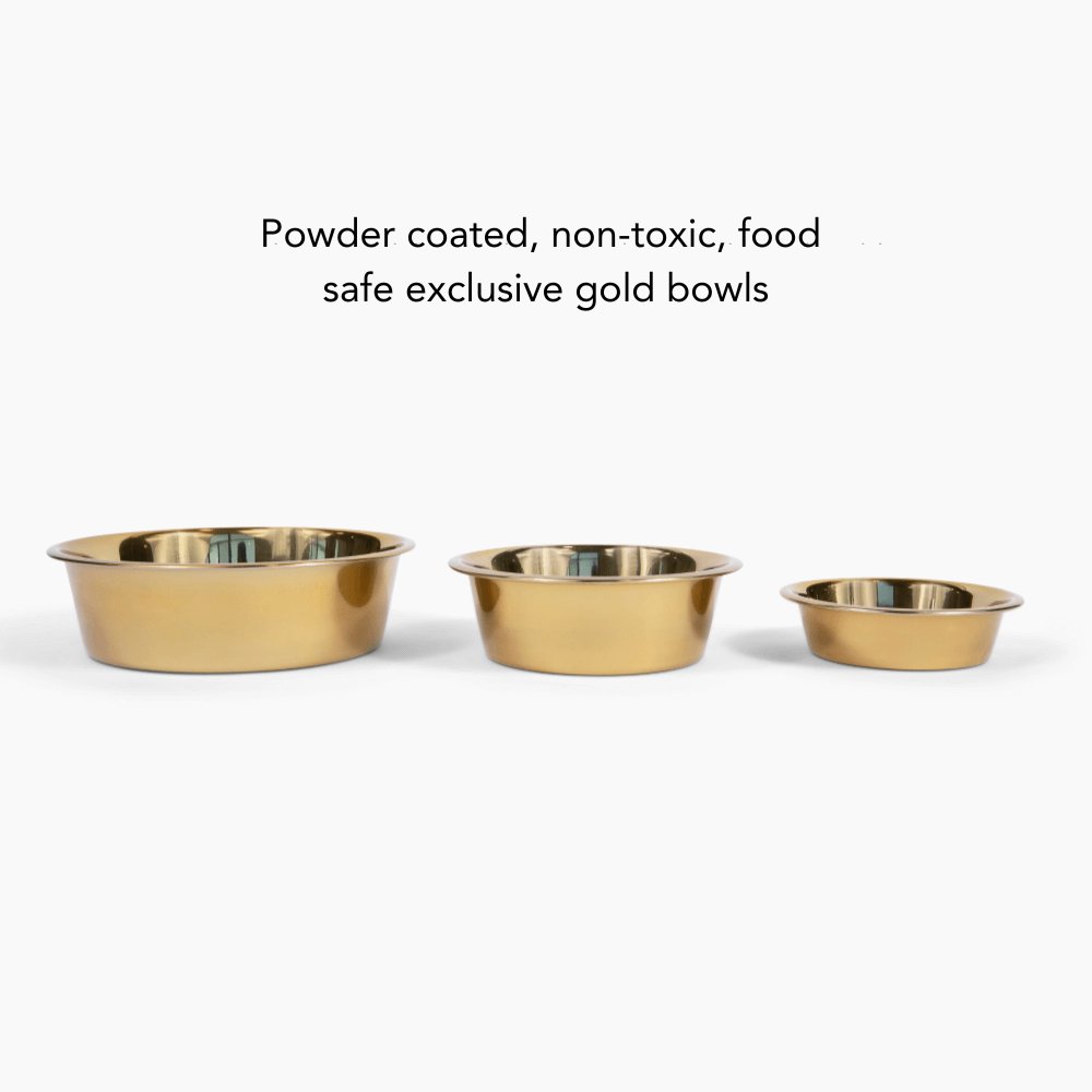 -Gold bowls are non-toxic, powder-coated and hand wash only.