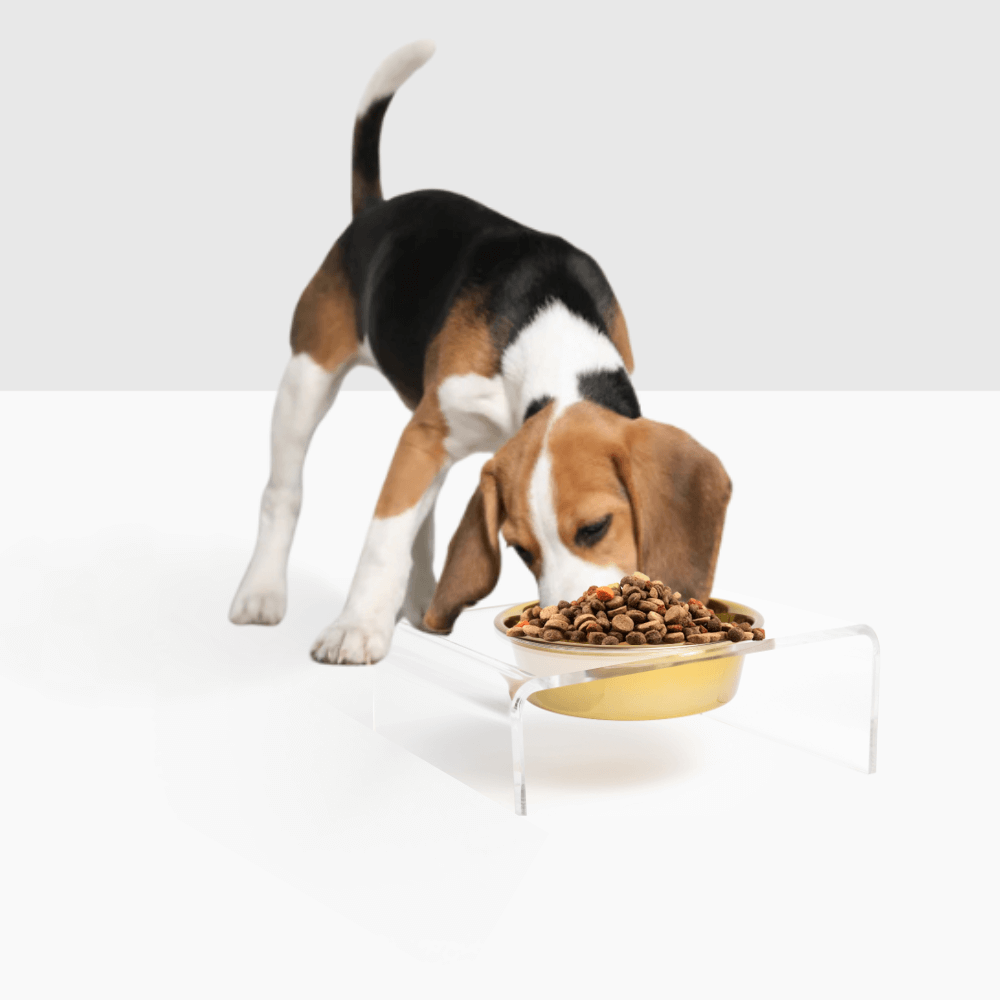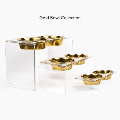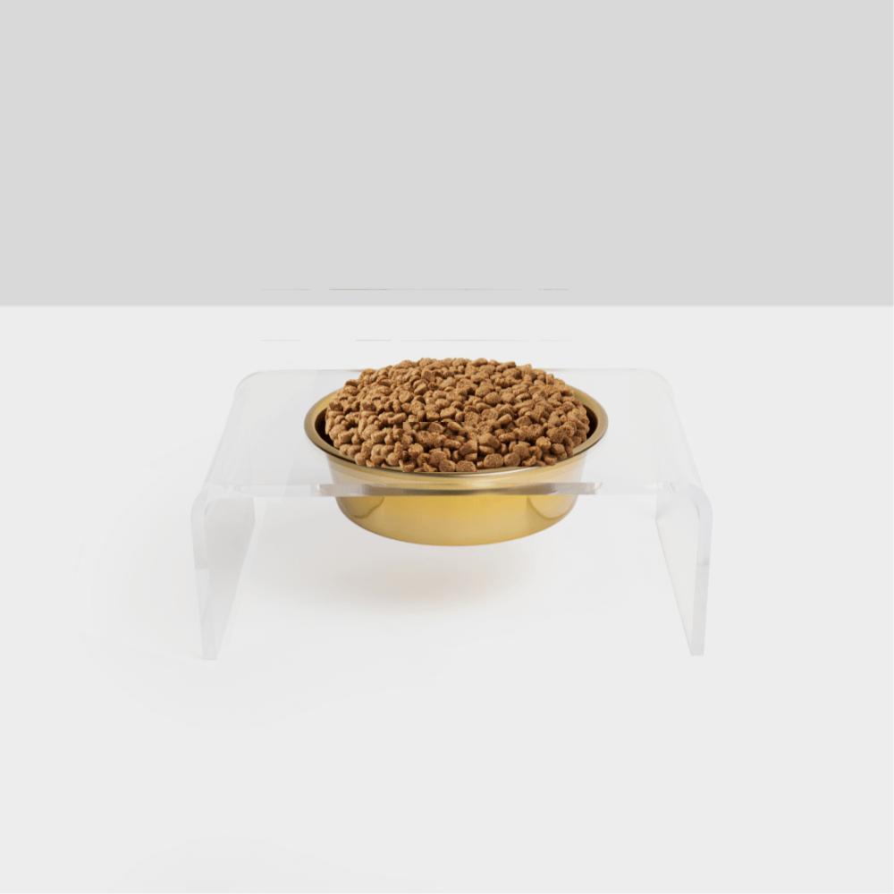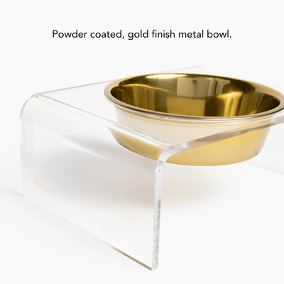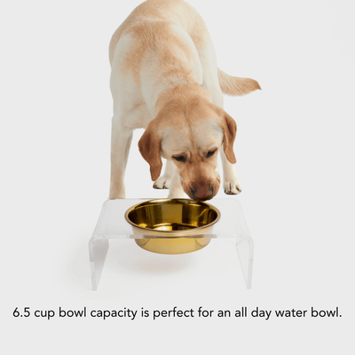 Our Clear Single Pet Bowl Feeder is a chic way to feed your pet. The raised stand provides an ergonomically correct eating position for your pet and blends seamlessly into any kitchen décor. Due to popular demand, the feeder now comes in 3 heights: 5", 7" and 12" tall. Each size feeder comes with one exclusive 6.5 cup stainless steel, gold powder coated bowl. Our gold bowls are lead free, non-toxic and hand wash only.