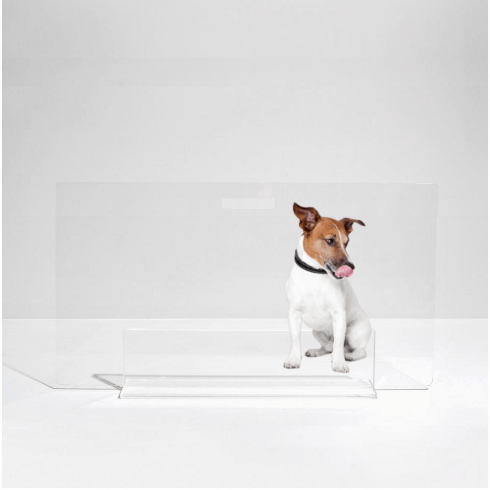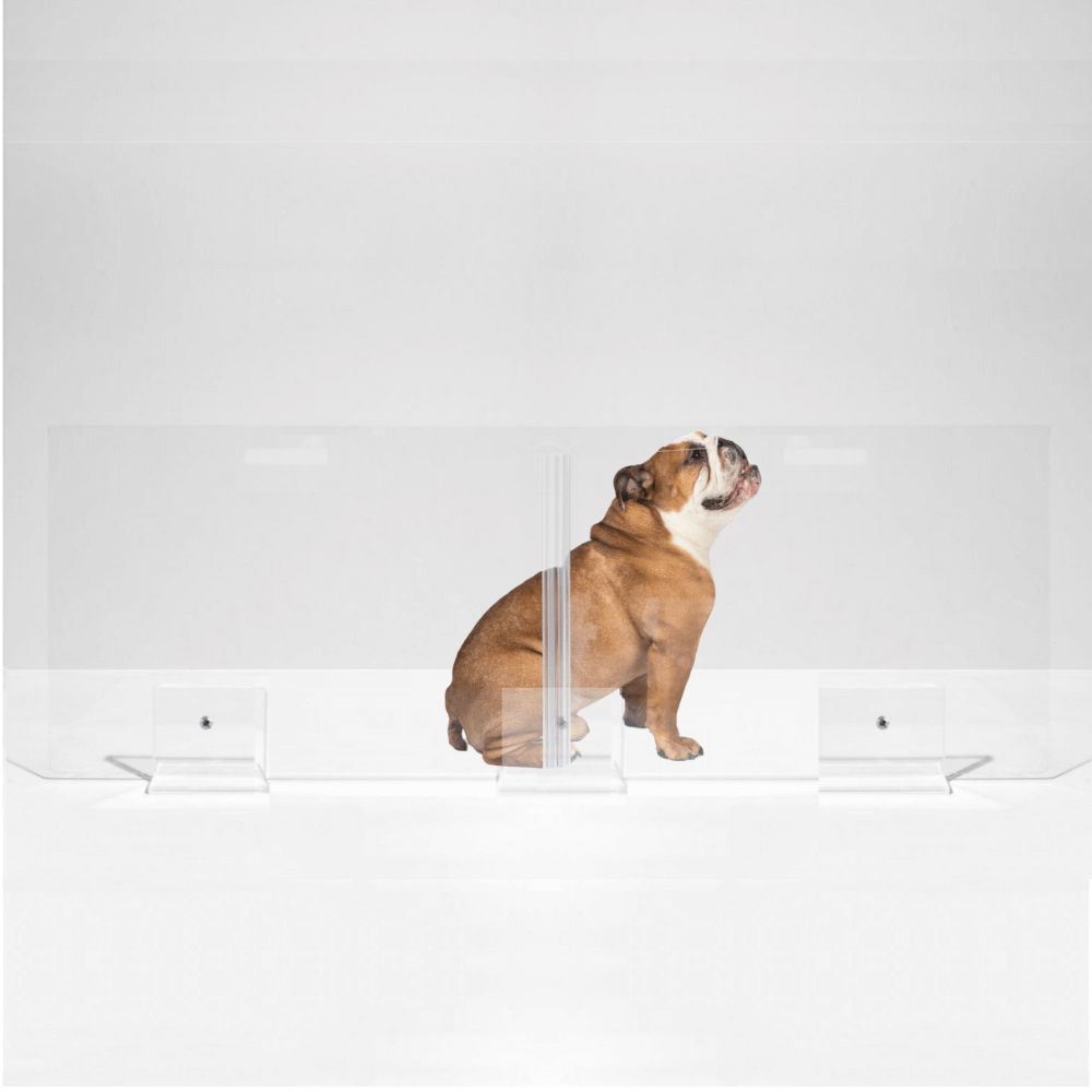 Clear Lucite pet products reduce pet anxiety because your pet has a clear view of you and the rest of the house.