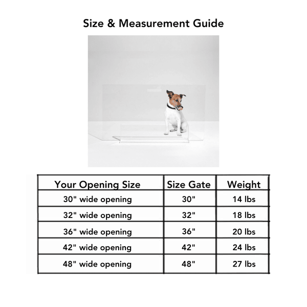 -2 piece modern pet gate in 5 sizes: 30", 32", 36", 42" and 48" wide.