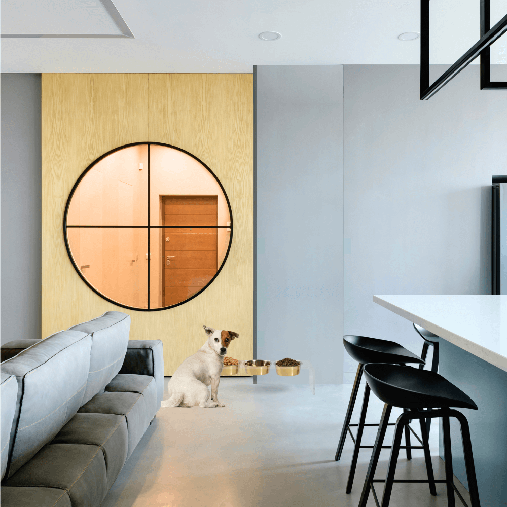Clear Lucite pet products reduce pet anxiety because your pet has a clear view of you and the rest of the house.