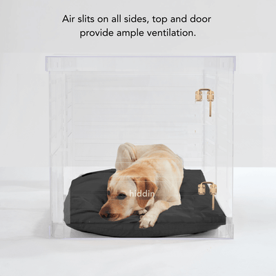 Clear Lucite pet products reduce pet anxiety because your pet has a clear view of you and the rest of the house.