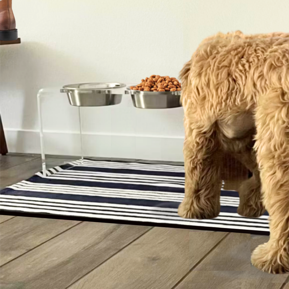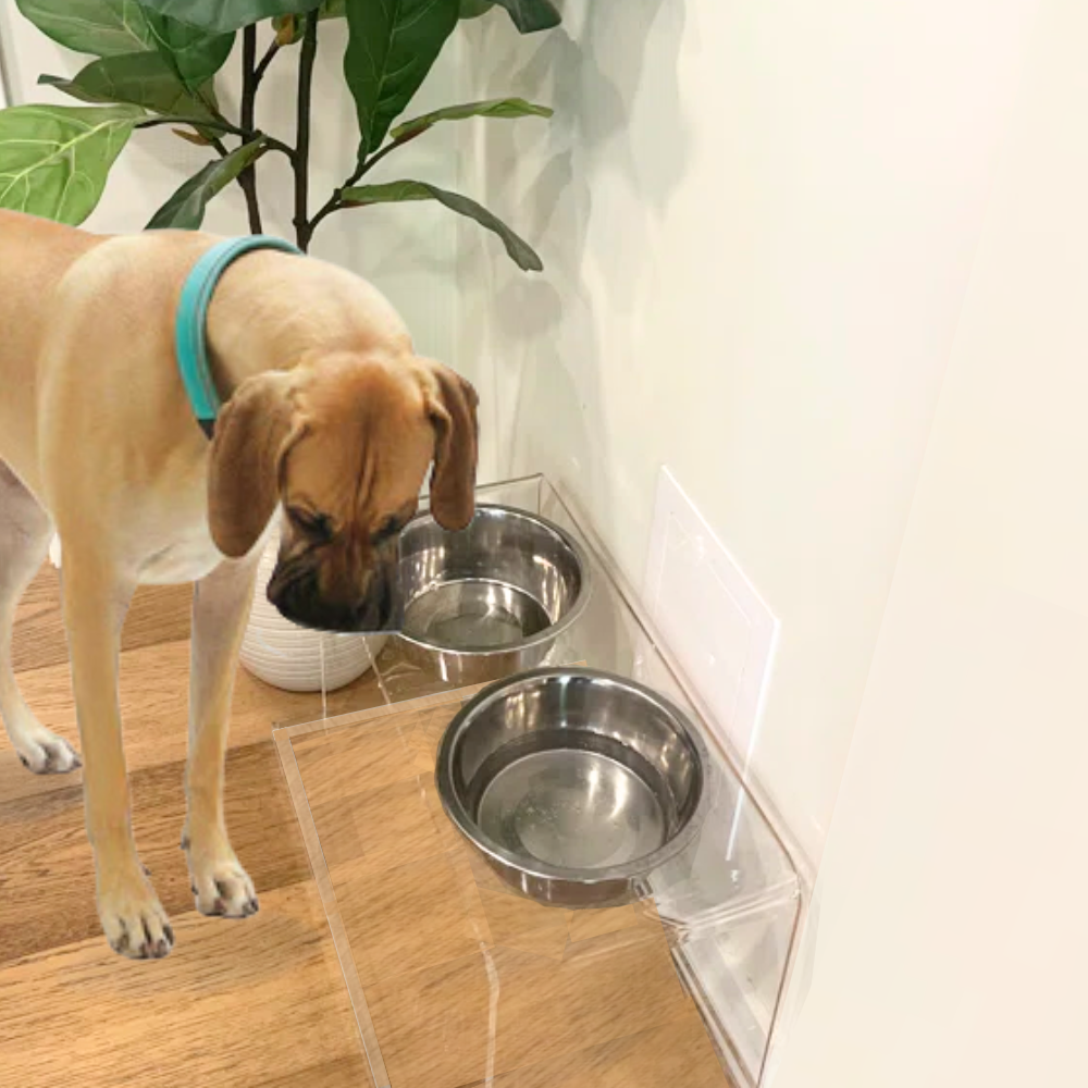 Our Tall Clear Double Pet Bowl Feeder with Silver Bowls is a chic choice for large dog dining. The 1/2" thick acrylic provides the strength, while the 12" height ensures an ergonomically correct eating position for your large pet. This tall lucite dog bowl feeder includes 2 lead free, dishwasher safe 6.5 cup stainless steel bowls.