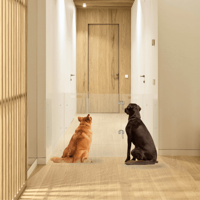 Clear Lucite pet products reduce pet anxiety because your pet has a clear view of you and the rest of the house.