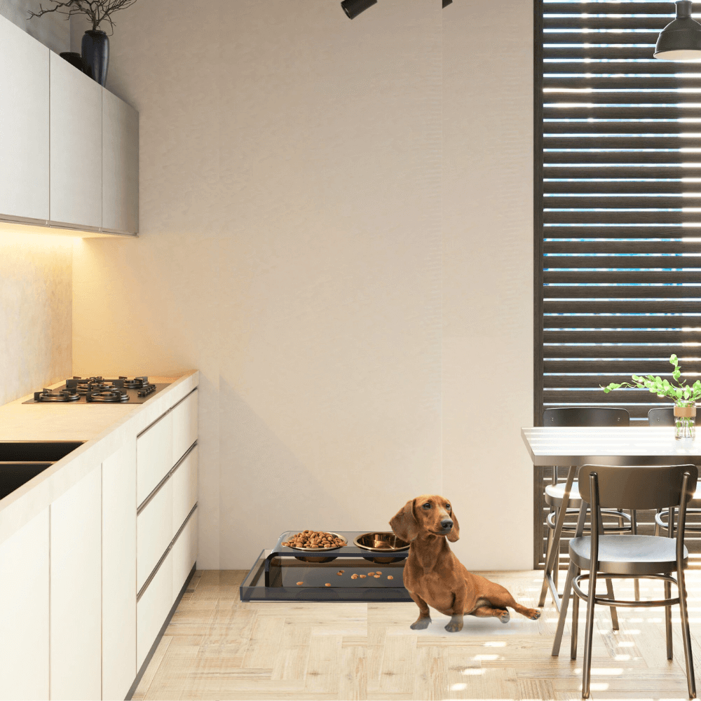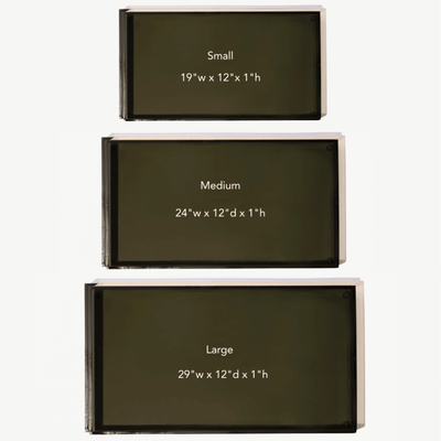 Our Bronze Acrylic Overflow Feeder Tray is the perfect catch-all for your sloppy eater! Just place this warm brown lucite tray under your pet feeder and clean up is easy. The modern Lucite trays have a 1" lip and a sturdy 1/4" thick body. Available in 3 stock sizes, the trays are designed to go under the Hiddin Bronze Feeders. The small tray accommodates our single and small double bowl feeders. The medium tray fits under medium feeders and the large tray fits the large and tall double feeders.