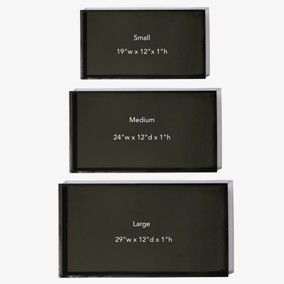 Our Smoke Grey Acrylic Overflow Feeder Tray is the perfect catch-all for your sloppy eater! Just place this chic, grey lucite tray under your pet feeder and clean up is easy. The modern Lucite trays have a 1" lip and a sturdy 1/4" thick body. Available in 3 sizes, the trays are designed to go under the Hiddin Smoke Grey pet feeders. The small tray accommodates our single and small double bowl. The medium tray fits under medium feeders and the large tray fits the large and tall double feeders.
