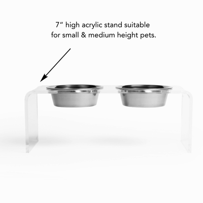 -7" high acrylic feeder provides correct eating position for medium size pets.