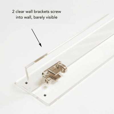 1. Screw 2 clear wall brackets into each wall, right above any base molding.